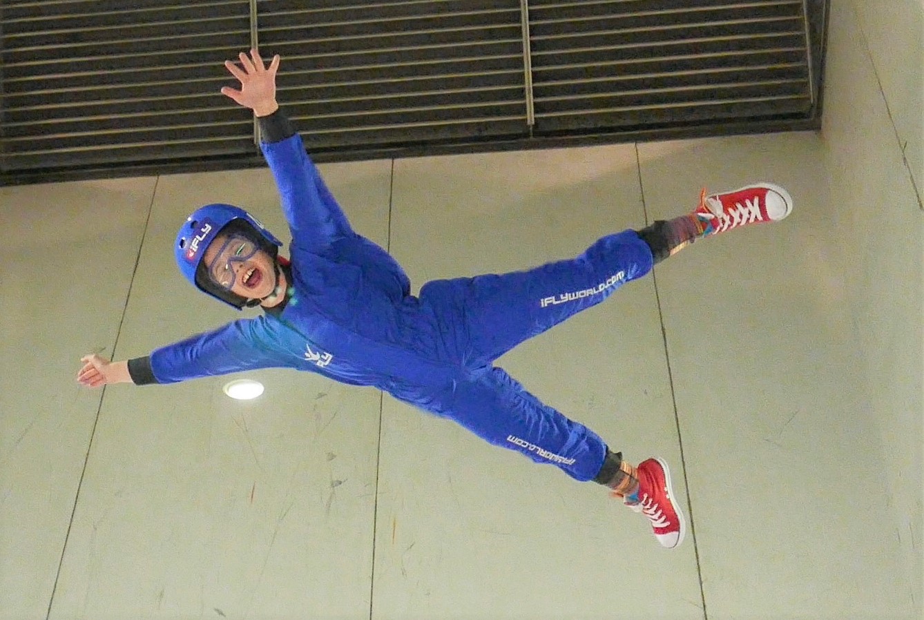 It all started at Christmas when I was aged four. At that time, I only wanted two things; a multi-coloured pen and to be able to fly like Tinkerbell. I got the pen on Christmas day but had to wait a few weeks for my other present which was my first flight at iFLY Indoor Skydiving (known as Airkix then) in Basingstoke. I can still remember the training video, getting into the suit and then going into the tunnel. It was weird being without Mum (Sharon) & Dad (Andy), but I could see them through the glass which was reassuring.