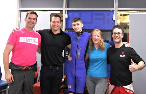 Pic shows Samantha with left to right, husband Lee, iFLY General Manager Shane, son James and iFLY Assistant General Manager Sean
